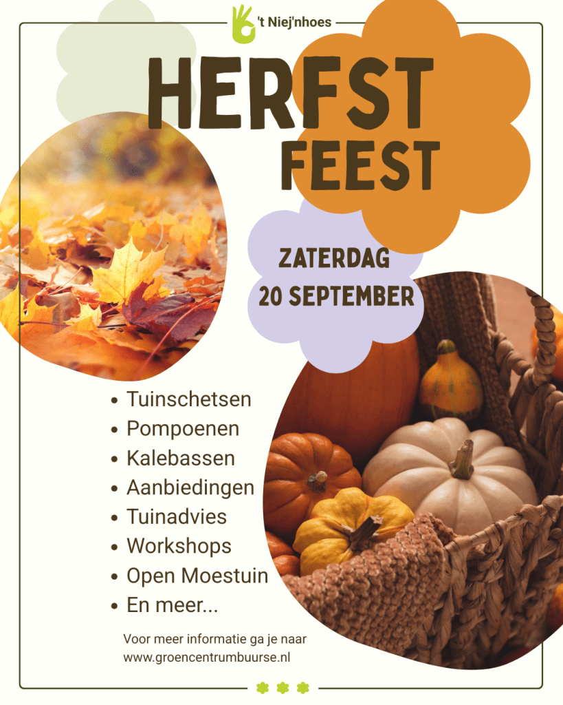 Op zaterdag 20 september vieren we de Herfst op ons groencentrum! Met de herfst in aantocht, wordt het namelijk ook weer tijd om in de tuin aan de slag te gaan!
