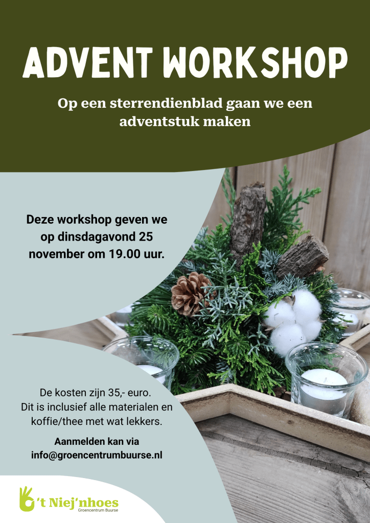 Advent workshop: Dinsdagavond 25 november om 19.00 uur